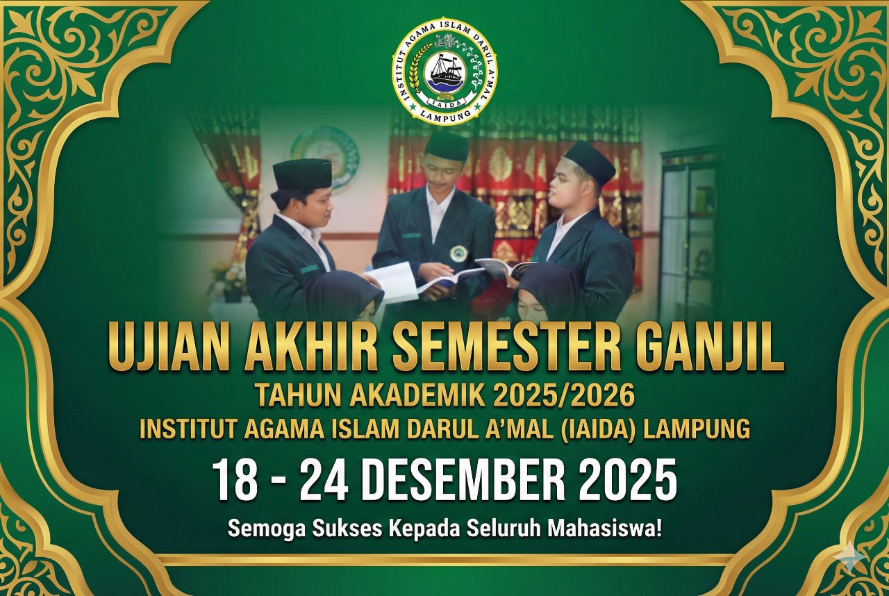 ? UJIAN AKHIR SEMESTER GANJIL T.A. 2025/2026 ? "Menguji Kompetensi, Meneguhkan Integritas" Kepada seluruh Sivitas Akademika IAIDA Lampung, Ujian Akhir Semester (UAS) bukan sekadar formalitas untuk menggugurkan kewajiban akademik, melainkan momentum penting untuk . . .