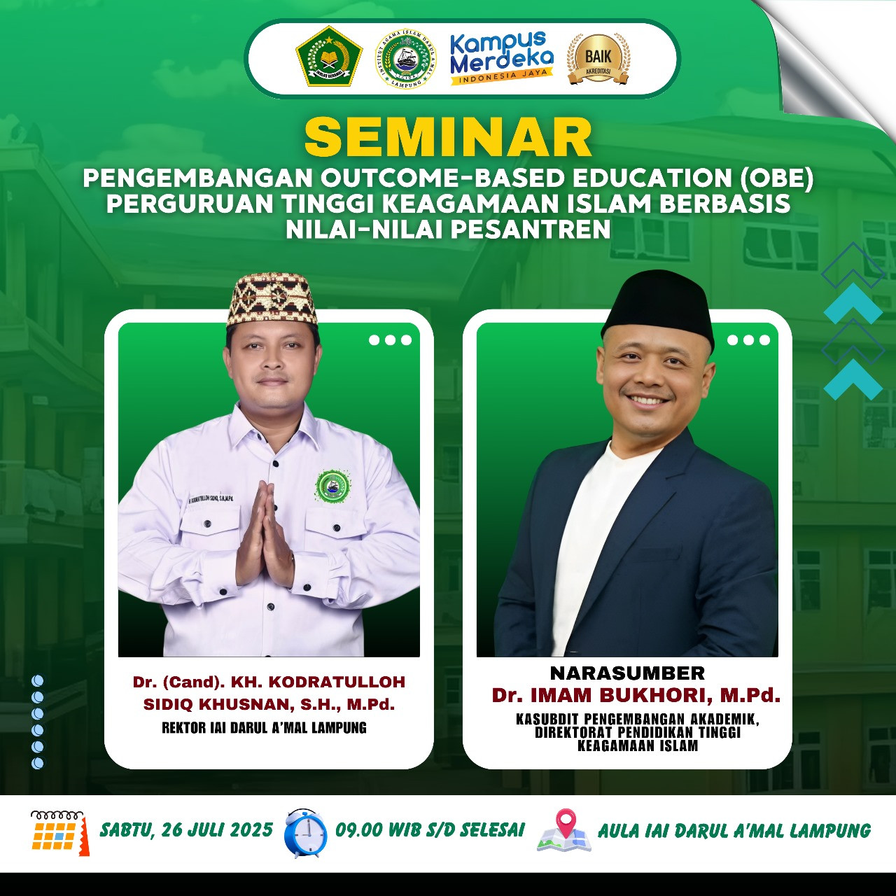 Seminar Nasional di IAI Darul Amal Lampung Bahas Pengembangan Outcome Based Education (OBE)